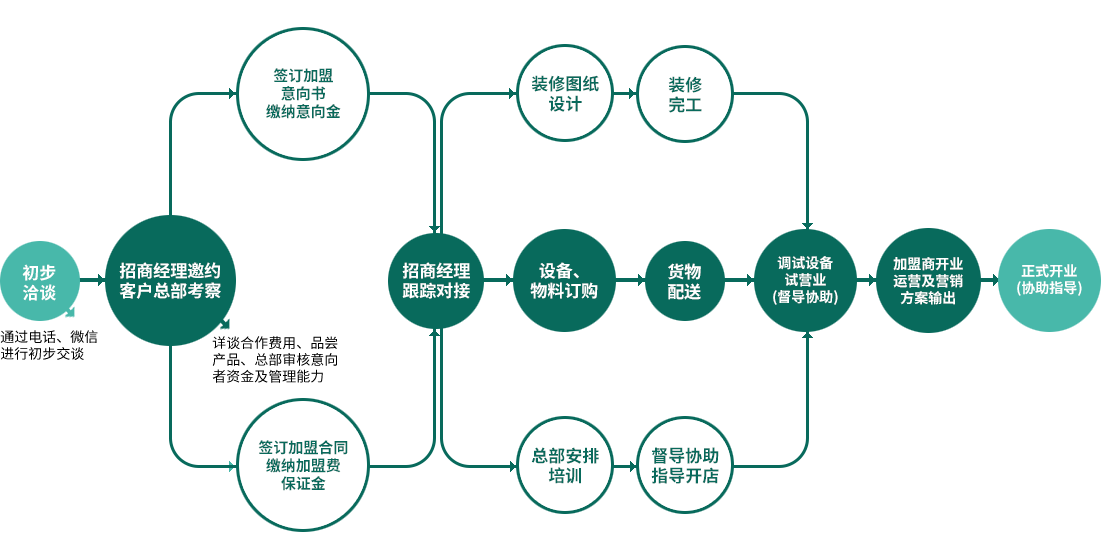 公司總部下設(shè)店鋪督導(dǎo),一年365天,天天巡回在各地代理區(qū)域,協(xié)助各地投資者進行渠道擴充、店鋪管理,提高經(jīng)營水平,提升業(yè)績